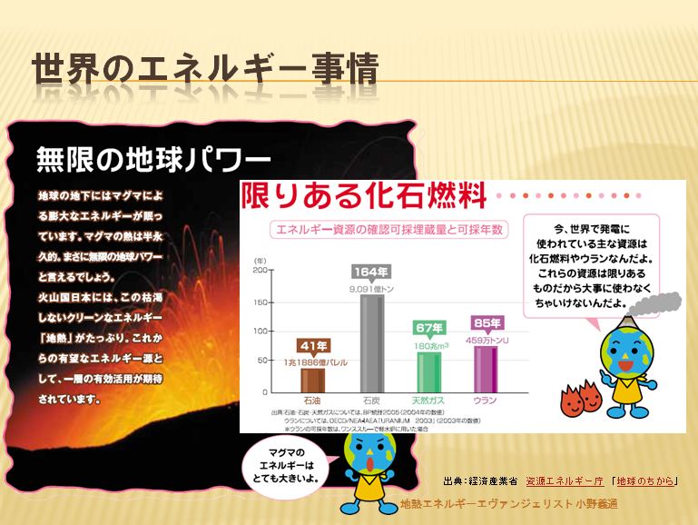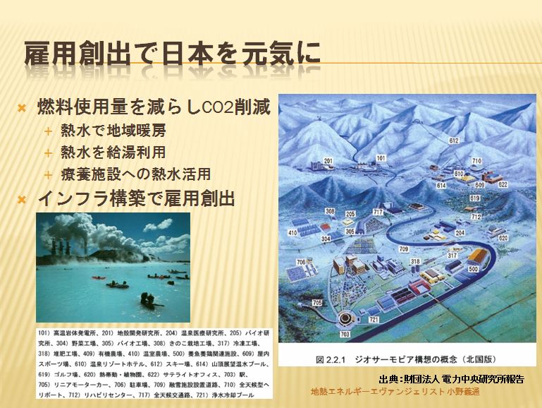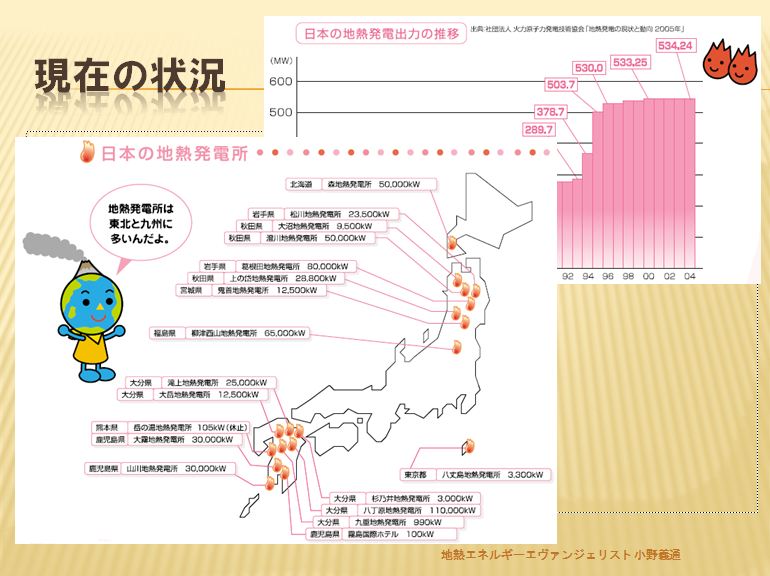 (熱源が国立公園内や温泉郷の近辺)がネックになっているように思われます。化石燃料は数十年で枯渇する懸念が高い事から、