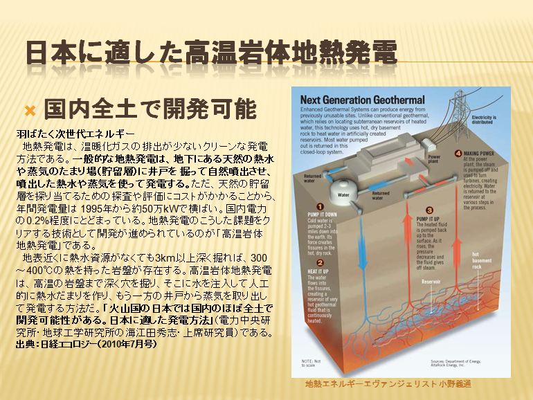 (火山国ではないドイツなど世界が積極的に取り組んでいる高温岩体発電、技術もノウハウも日本製です。)