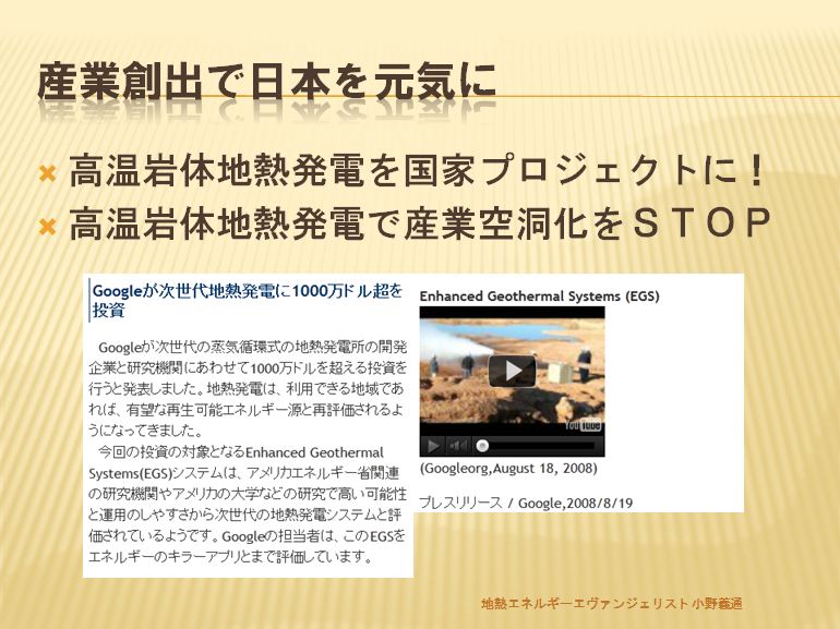 日本はEGS発電やマグマ発電に目を向け、早く実用化できるよう研究開発が必要ではないでしょうか!?